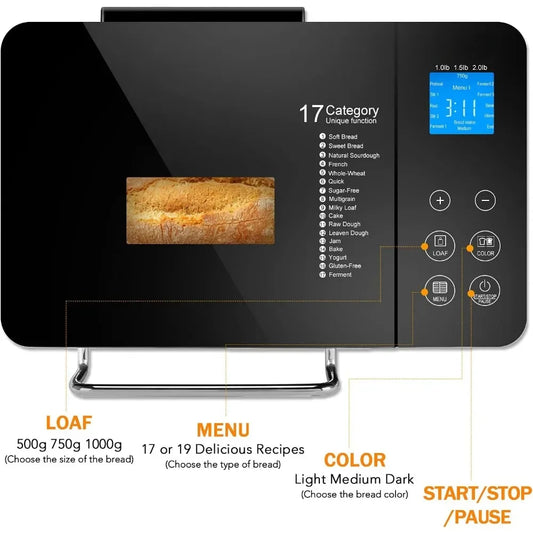 Customizable Options: Choose from various loaf sizes, crust shades, and baking modes to suit your taste.