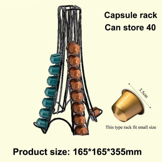 Hot Sale 40 Cups Iron Plating Coffee Shelves Kitchen Organizer Durable Storage Racks High Quality Rotary Storage Stainless Steel