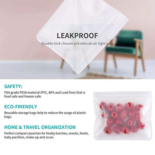 Walfos Food Storage Bag Reusable Freezer Bag Ziplock Bag Leakproof Top Silicone Bag Zero Waste Kitchen Organizer FDA BPA Free