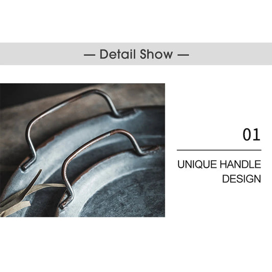 Regular price From $34.95 USDRegular priceUnit price / perSale price From $34.95 USDWalfos European Retro Metal Plate With Handle Handcrafted Round Wrought Vintage Storage Bread Tray Home Decoration