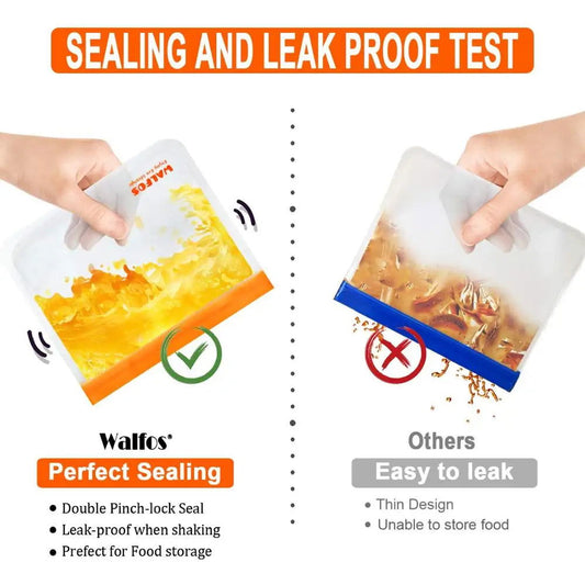 Regular price $12.95 USDRegular priceUnit price / perSale price $12.95 USDWalfos Food Storage Bag Reusable Freezer Bag Ziplock Bag Leakproof Top Silicone Bag Zero Waste Kitchen Organizer FDA BPA Free