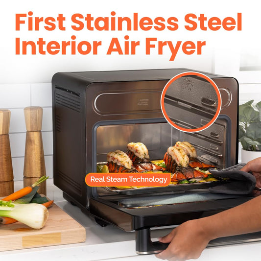 Nutricook Steami 11-in-1 Convection Air Fryer, 25QT Countertop Oven for Baking, Roast, Steam, Dehydrate, Pizza - Convection Oven with Accessories for Healthy Cooking Stainless Steel
