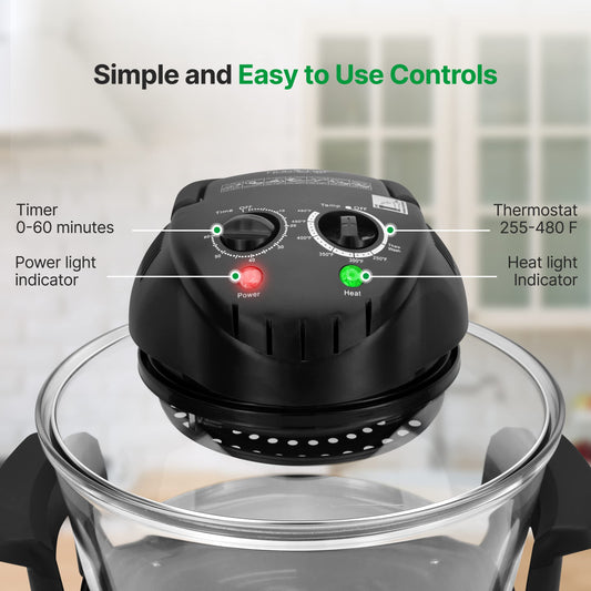 Nutrichef Convection Countertop Toaster Oven - Healthy Kitchen Glass Air Fryer Roaster Oven, Bake, Grill, Steam Broil, & Roast - Includes Glass Bowl, Broil Rack, & Toasting Rack - 18 Quart Capacity