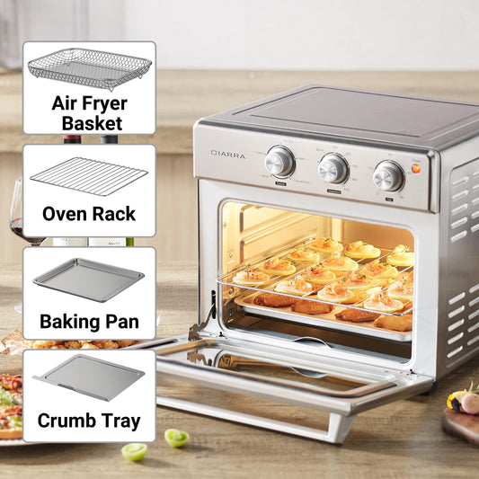 CIARRA CATOSMC01 Oil-Less Countertop Convection Oven, Air Fryer Toaster Oven with 6-in-1 Function, Nonstick Interior, 25QT, 1700W, Stainless Steel