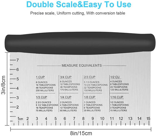 Vendor:Walfos® KitchenwareRegular price $14.38 USDRegular priceUnit price / perSale price $14.38 USDOurokhome Dough Pastry Bench Cutter Scraper, Stainless Steel Pizza Cutter for Kitchen Baking, Dishwasher Safe, Anti-Wear Laser-Engraved Measuring Scale and Conversion Chart, 2 Pack, Black