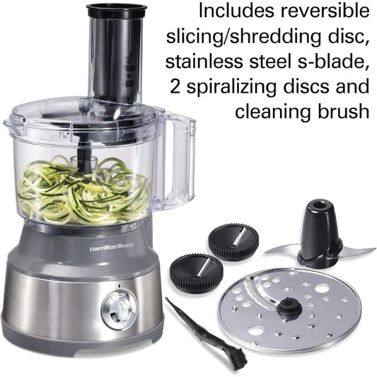 Food Processor & Vegetable Chopper for Slicing, Shredding, Mincing, and Puree, 10 Cups + Veggie Spiralizer, Grey and Stainless