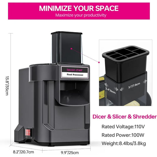 3 in 1 Electric Food Processor Vegetable Dicer Chopper Multifunctional Potato Cutter Onion Slicer with 3 Stainless Steel Blades