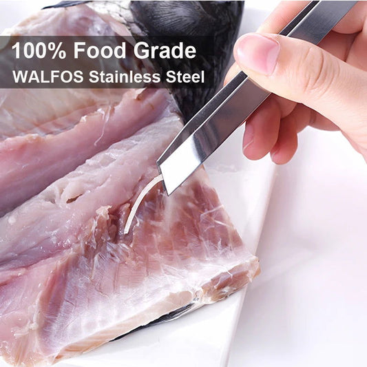 Walfos Stainless Steel Fish Bone Tweezers Remover Pincer Puller Tongs Pick-Up Seafood Tool Kitchen Tweezer