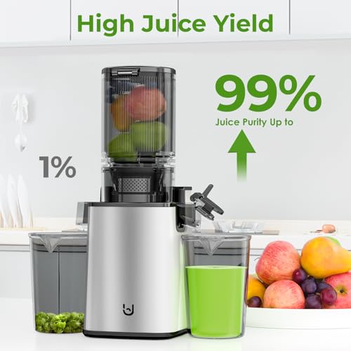 Masticating Juicer Machines, 5.3" Inch Feeding Chute Supports Whole Fruits and Vegetables,350W Slow Cold Press Juicer,Easy to Clean, Light-Stainless Steel