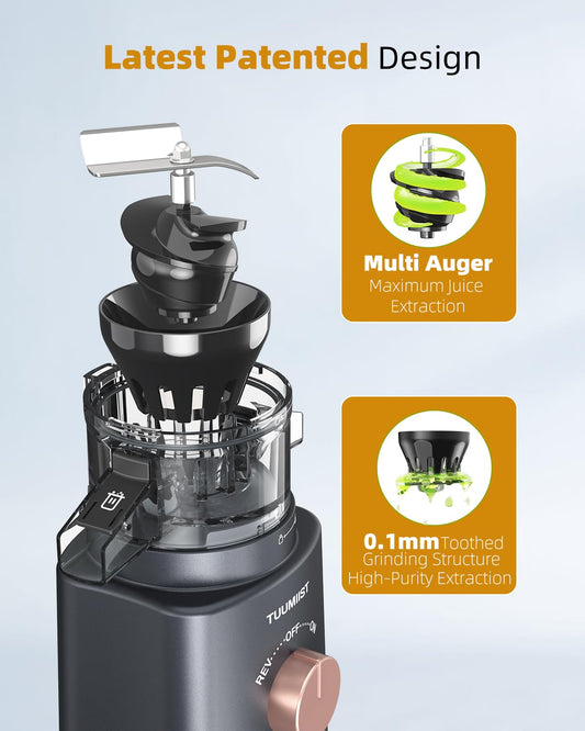 Juicer Machines, TUUMIIST Cold Press Juicer with 4.25'' Large Feed Chute Fit Whole Vegetable And Fruit, Masticating Juicer Easy To Clean, Gun Grey