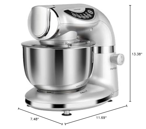 Aifeel Stand Mixer, 8.5QT+ 6QT Two Stainless Steel Bowls Electric Food Mixer, 7 in 1 Multifunctional Kitchen Mixer with Dough Hook, Whisk, Beater, Meat Grinder,Pasta & Cookie Maker-Silver