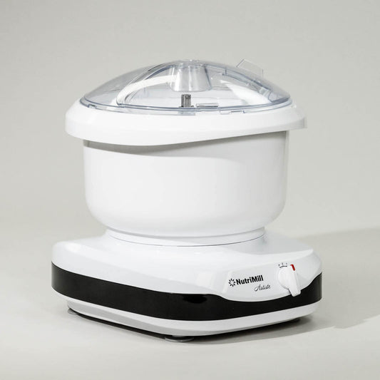 NutriMill Artiste Kitchen Electric Stand Mixer 500 Watt 6.5 Quart Bowl with Dough Hook & Wire Whips (Black Trim)