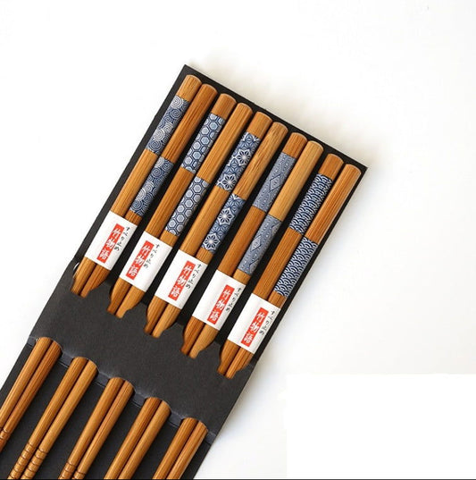 Japanese Bamboo Family Of Five Chopsticks Cutlery Set