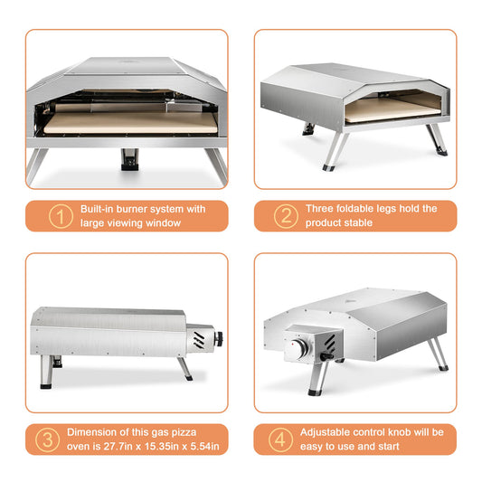 Mimiuo Gas Pizza Oven Outdoor - Portable Propane Pizza Ovens for Outside - Professional Pizza Stove with 13 inch Pizza Stone, Ideal for Any Outdoor Kitchen