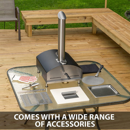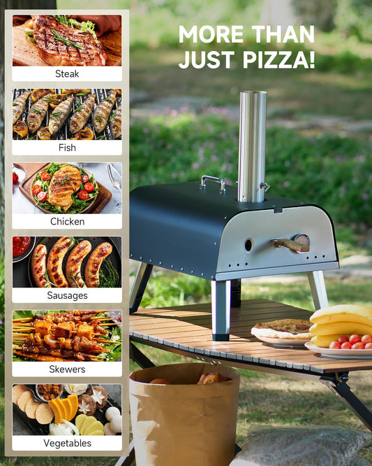 12” Portable Wood Fired Pizza Oven - Stainless Steel Pellet Pizza Stove for Outdoor Cooking, Backyard & Camping