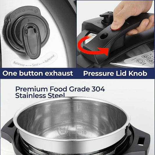 CARORI 9-in-1 Electric Pressure Cooker 6 Qt, Programmable Multi-Function Cooker with Safer Vent, Olla de Presion, Rice Cooker, Slow Cooker, Steamer, Sauté, Warmer & Sterilizer, 1000W, Stainless Steel