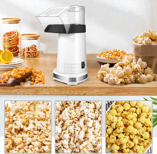 Fast Hot Air Popcorn Popper Maker, Electric Popcorn Machine with Measuring Cup, No Oil, Easy to Clean & Maintain, Popcorn Machines for Home Family Party | White