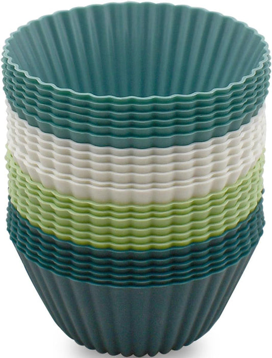 24 Pack Silicone Baking Cups Reusable Muffin Liners Non-Stick Cup Cake Molds Set Cupcake Silicone Liner Standard Size Silicone Cupcake Holder Silicon Cups for Baking Bpa Free (4 Colors)