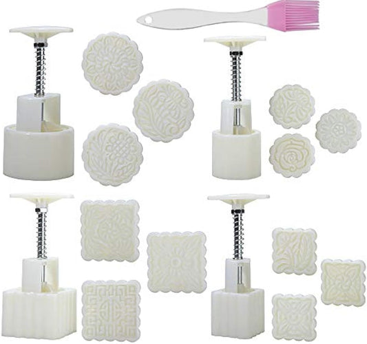 Chinese Traditional Mid-Autumn Mooncake Mold,Biscuit Stamping Machine,18 pcs 100g/125g Different Round And Square Flower Pattern For 2 Sets.
