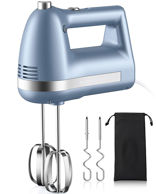 Z-DESDEMONA Elektryczny mikser ręczny, mocny 300 W, elektryczny mikser ręczny z 304 trzepaczkami, hakiem do ciasta, ręczny mikser z turbo do pieczenia ciast, jajek, kremów spożywczych (niebieski)