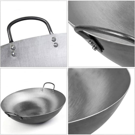 LPDBSIDJE Wok Duży Ciężki Wok ze stali węglowej kutej ręcznie (okrągłe dno) Woki i patelnie do smażenia - 36 cm