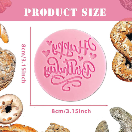 4Pcs Happy Birthday Fondant Embosser 3D Design Acrylic Mould Cookie Stamp, Cookie Cutters for DIY Baking Cake/Sugar Paste/Cupcake/Chocolate (3.15 inch, Random Colors)