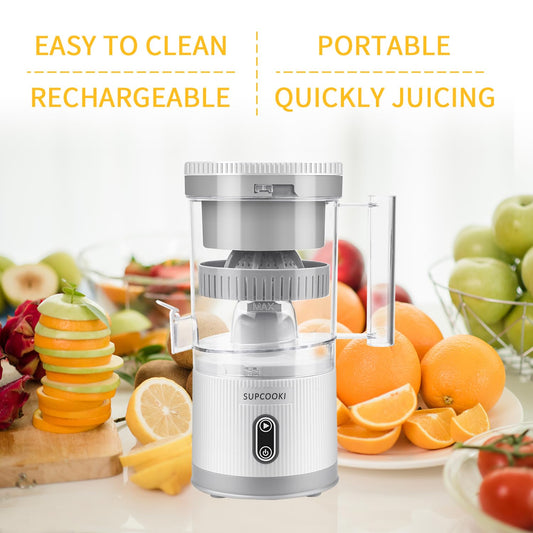 DUSENHO, Elektryczna Wyciskarka Do Soku Akumulatorowa - Wyciskarka Do Cytrusów z USB i Szczotką Czyszczącą Przenośna Wyciskarka Do Pomarańczy, Cytryny, Grejpfrutów