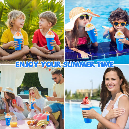 Slushy Maker Cup - DIY Magic Slushy Maker Squeeze Cup, przenośny kubek do wyciskania koktajli, soków, mleka i lodów, dwuwarstwowy silikonowy kubek do slushie ze słomką dla przyjaciół, prezenty rodzinne (niebieski)