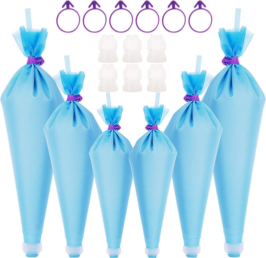 Reusable Piping Bags,6 Silicone Pastry Bags In 3 Size (12"+14"+16"),6 Icing Couplers For Standard Tips,6 Frosting Bag Ties Cake Decorating Supplies For Cupcakes,Cookies,Candy and Cake Decorating