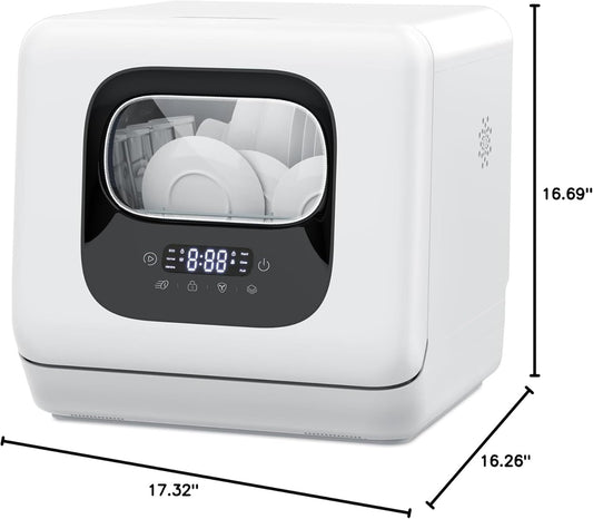 Countertop Dishwasher, Portable Dishwasher w/Multiple Cleaning Modes 360° Spray Automatic Dishwasher w/6L/1.59Gal Tank Mini Dishwasher w/Semi-clear Cover for Apartment RV Dormitory, 800W White+Brown