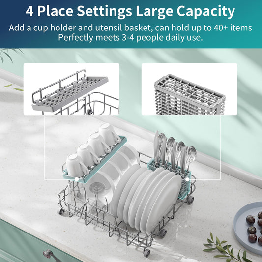 Zmywarka do naczyń IAGREEA, 7 programów mycia, kompaktowa mini zmywarka, bez haka, zabezpieczenie przed przeciekaniem, namaczanie owoców i warzyw, na 4 zestawy naczyń stołowych