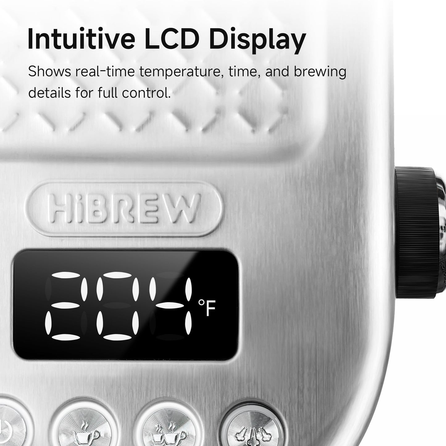Ekspres do kawy HiBREW H10B, programowalny, szczotkowana stal nierdzewna, regulowana temperatura i objętość filiżanki, dysza spieniająca do mleka