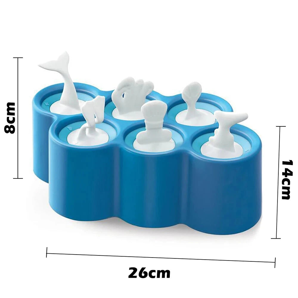Walfos Summer Fun: 6-komorowa silikonowa foremka do lodów w kształcie ryby z patyczkami - zrób to sam - maszyna do lodów dla dzieci i dorosłych