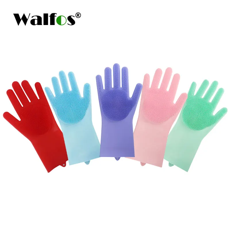 Walfos 2 szt. Silikonowe rękawice do mycia naczyń, gąbka do mycia naczyń, gumowe rękawice do szorowania, akcesoria do czyszczenia kuchni