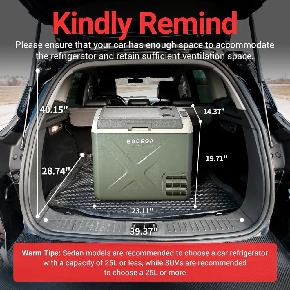 - 【QUIET AND BATTERY PROTECTION】12 volt refrigerator is designed with low noise of less than 45dB, providing a quiet and comfortable environment for you when it is running. This car fridge also provides H/M/L battery protection functions at different levels, which prevent your car's power supply from being overloaded or short-circuited, you needn't worry about running out of car power when using electric cooler. With anti-30°slip, our camping fridge can work normally even on bumpy roads.