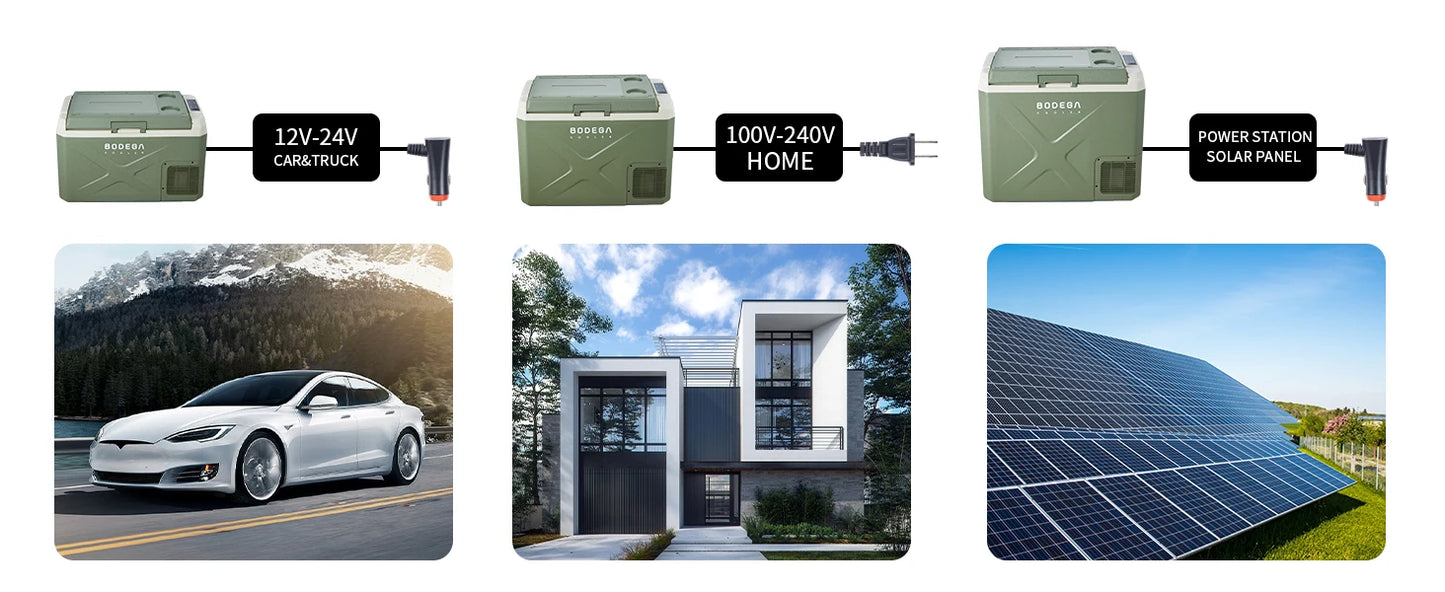 - 【SUPPORT】12v cooler is equipped with 100/240V AC and 12/24V DC adapters, which can be used at home or on various vehicles, such as SUV, Truck, RV, Camper, Van, etc,. Packaged Included( car refrigerator*1, basket*1, cigarette lighter connector*1, plug adapter *1, manual*1)