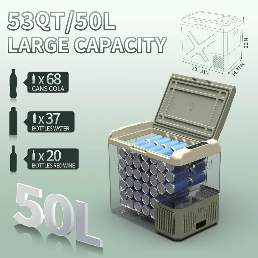 12 Volt Car Refrigerator, Car Fridge WIFI APP Control, 53Quart RV Electric Cooler, -4℉-68℉ Freezer 12/24V DC 100-240 Volt AC