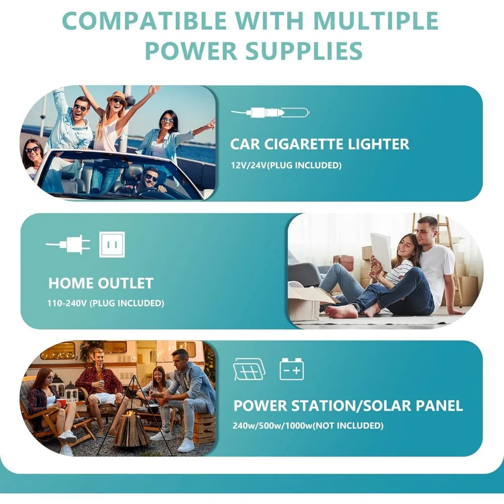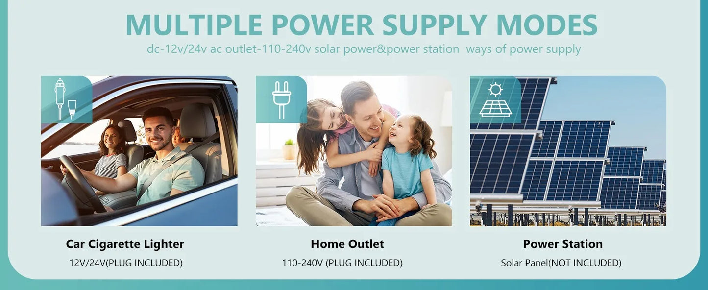 - SMART BATTERY PROTECTION&HOME/CAR DUAL-USE - Car fridge 12v is equipped with 110/240V AC and 12/24V DC adapters, which can be used at home or in the car. The RV refrigerator provides three (low, medium, and high) battery protection functions at different levels. This design can prevent the car power supply from being overloaded or short-circuited, so you don't have to worry about running out of car power when using the 12 volt fridge. All this is for you to enjoy the journey.