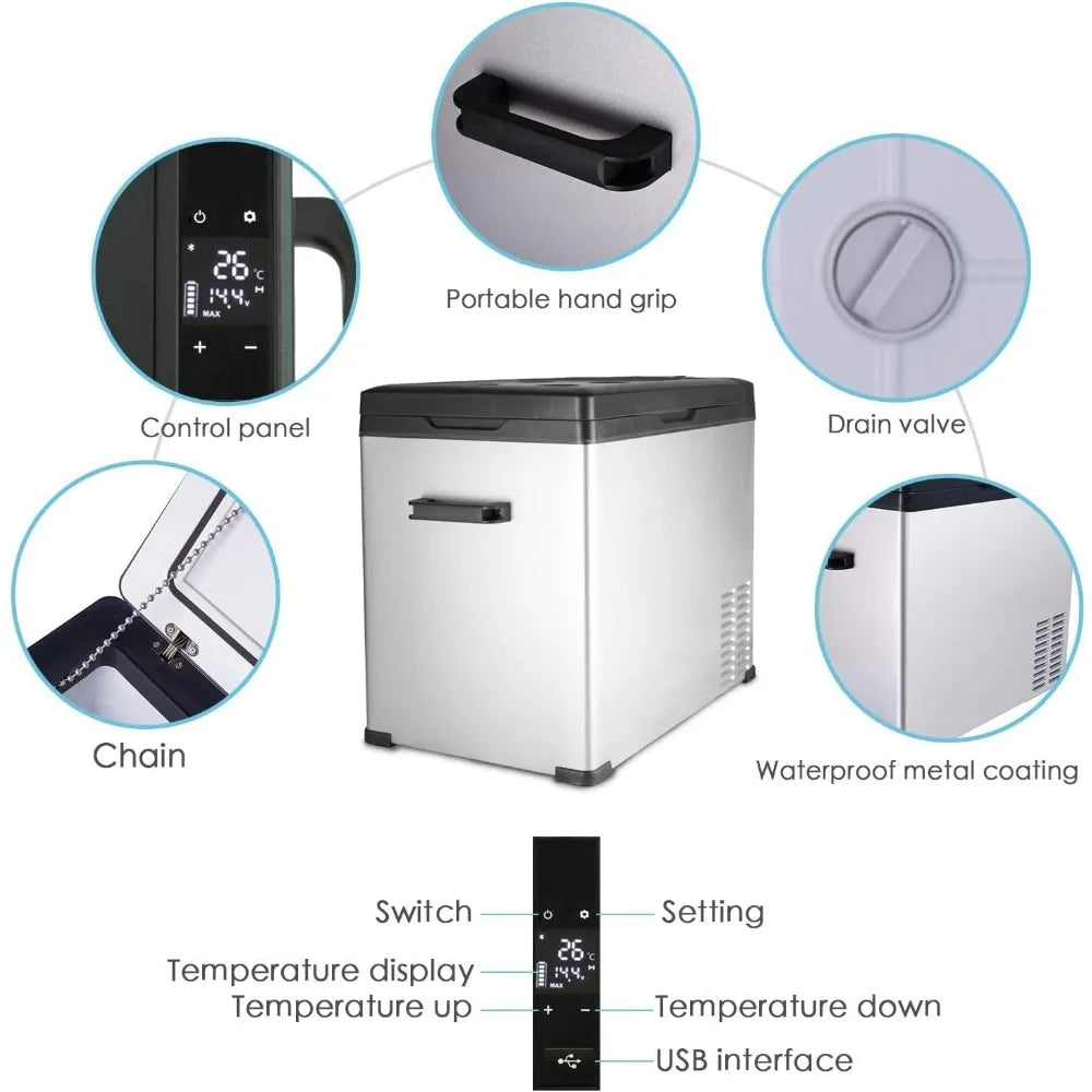 12-volt Refrigerator 54qt Portable Freezer Electric Cooler Compressor Car Fridge for Car 12/24V DC and 90-250 AC, Cooling to -4F