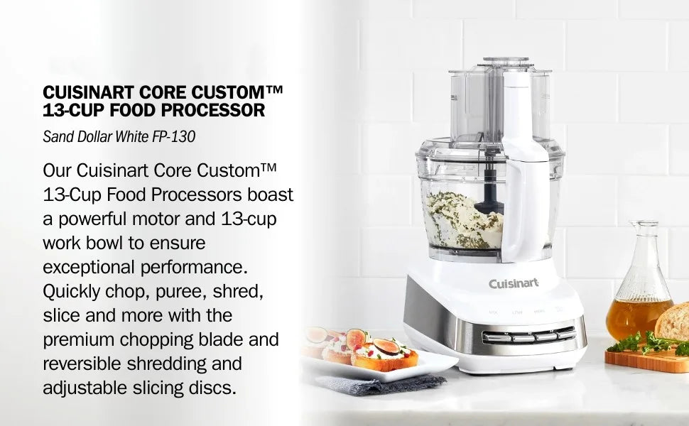 13-Cup Multifunctional Food Processor, Stainless-Steel Blades, High/Low/Pulse speeds, 950-Watt Motor, White