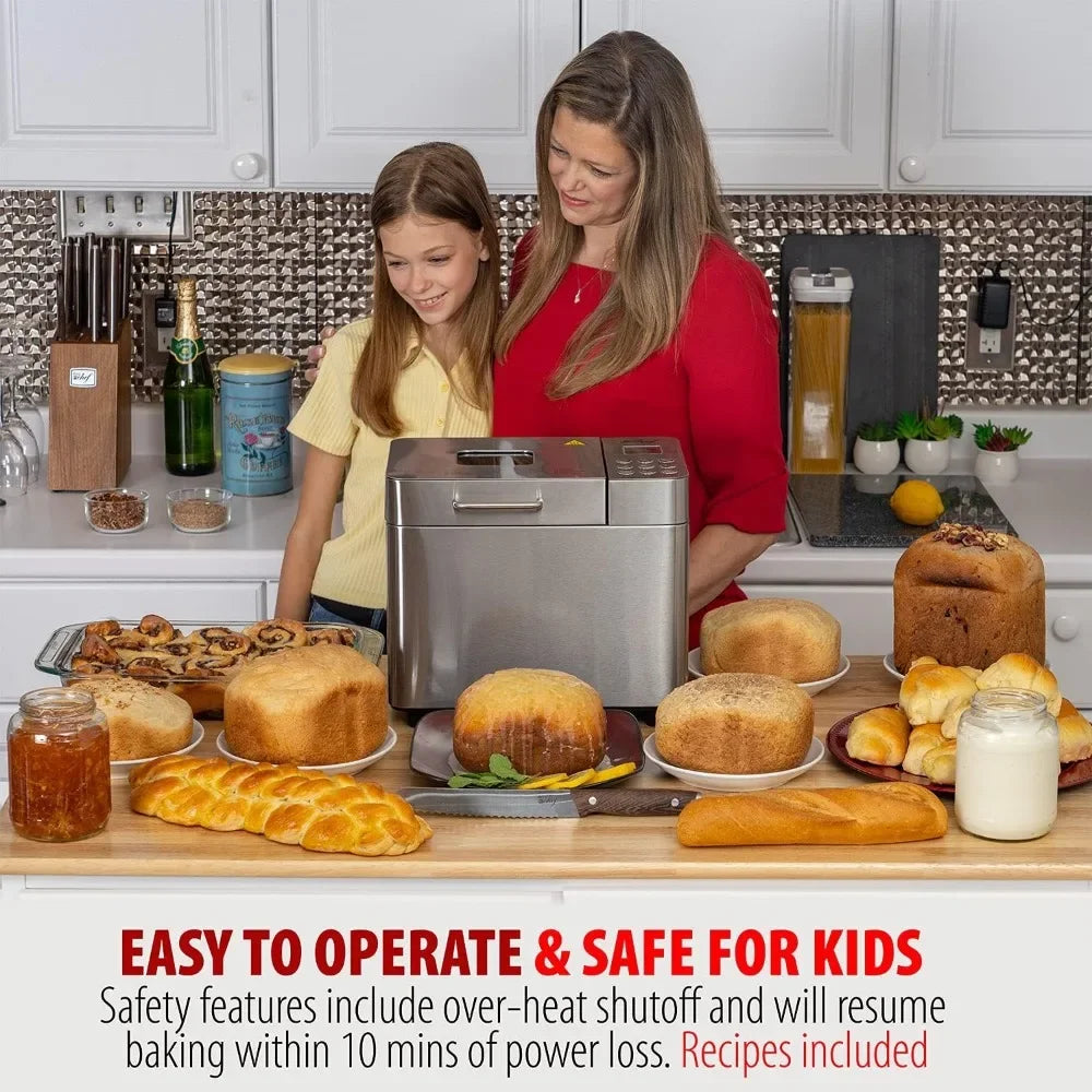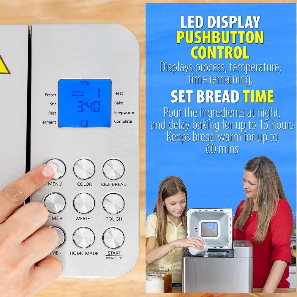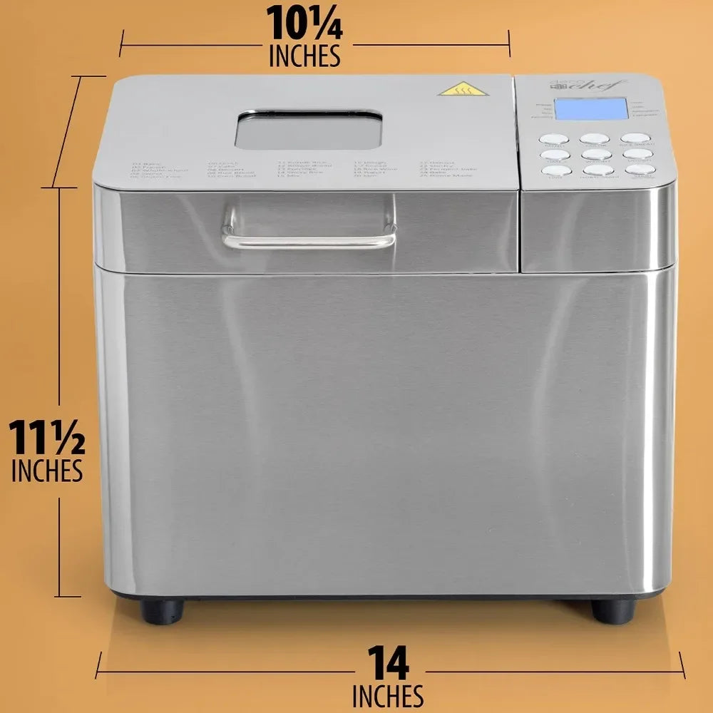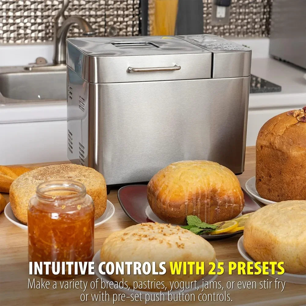 2-pound stainless steel bread maker with 25 intelligent cooking programs, including accessories and measuring cups