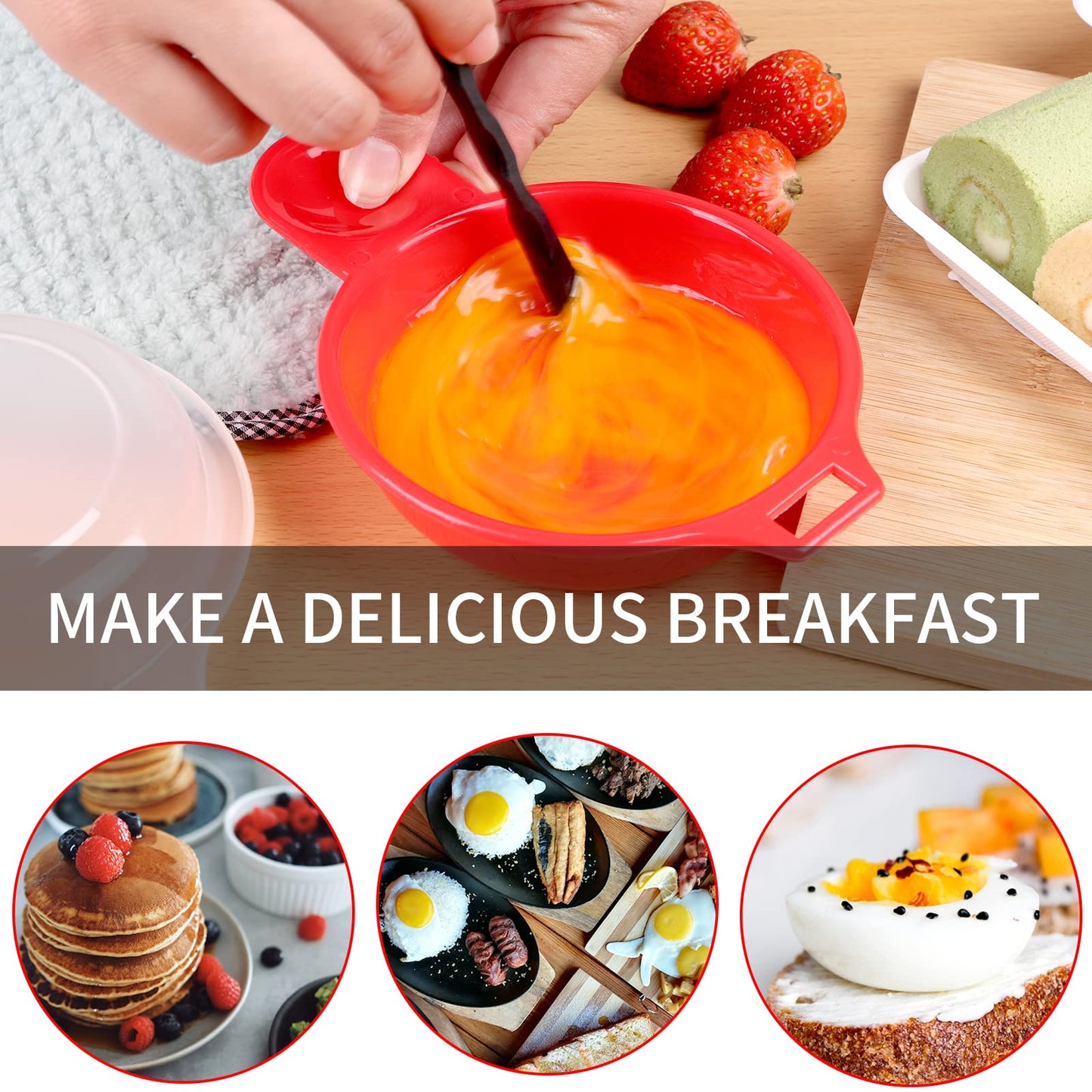 Details: 2 sets Microwave Egg Cooker,1 Minute Fast Egg Hamburg Omelet Maker Kitchen Cooking Tool(Red and clear)