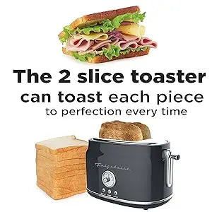 2 Slice Toaster, Wide Slot for Bread, English Muffins, and Bagels, 5 Adjustable Toast Settings, Cancel and Defrost, 900w, Black.