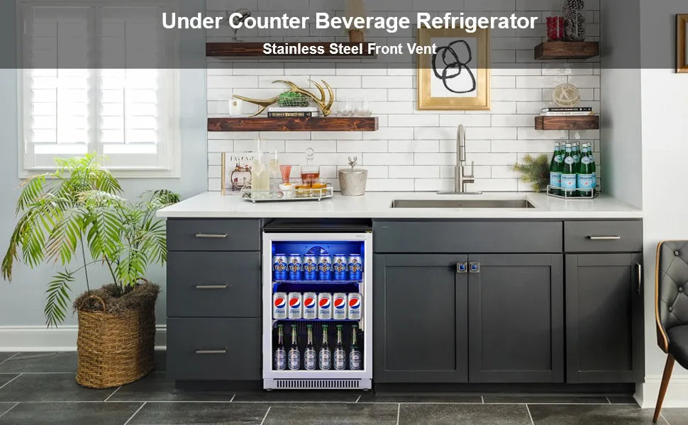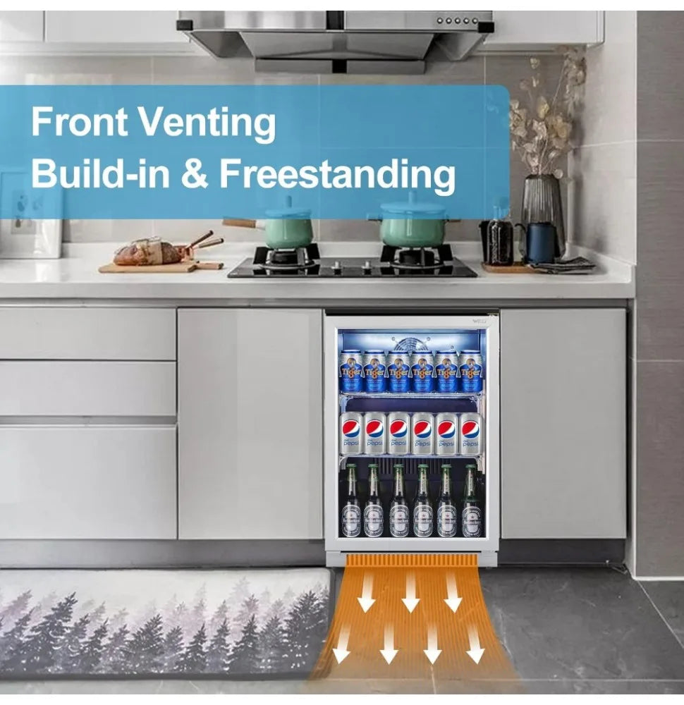 - The front venting design allows the beverage fridge for built-in, under counter, or freestanding use without requiring much space for heat dissipation.