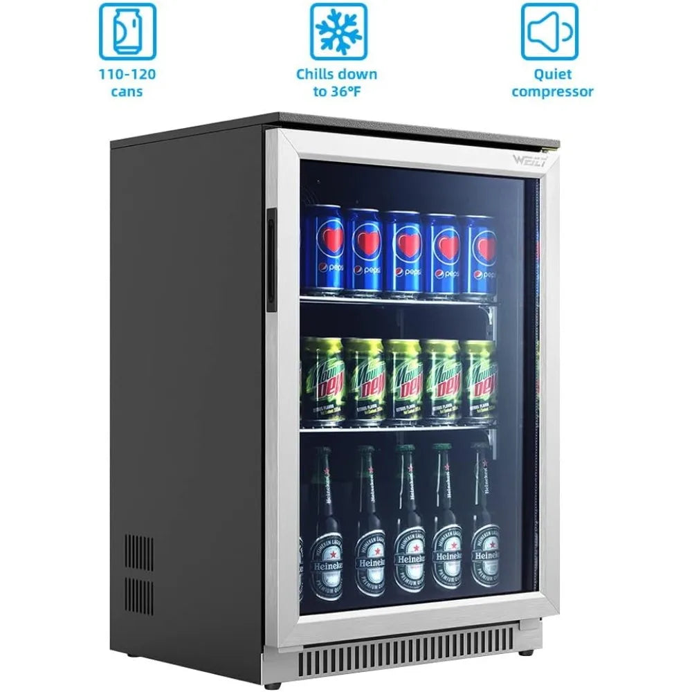 WEILI under counter refrigerator with capacity to hold up to 120 standard cans, you can fit all the drinks you want and wiithout taking up too much space in your kitchen. Besides, you can adjust two shelves to fit the tallest bottles or cans easily for the shelves are adjustable. The spacious design and on-trend good looks make the under counter beverage refrigerator suitable for a party or potluck.