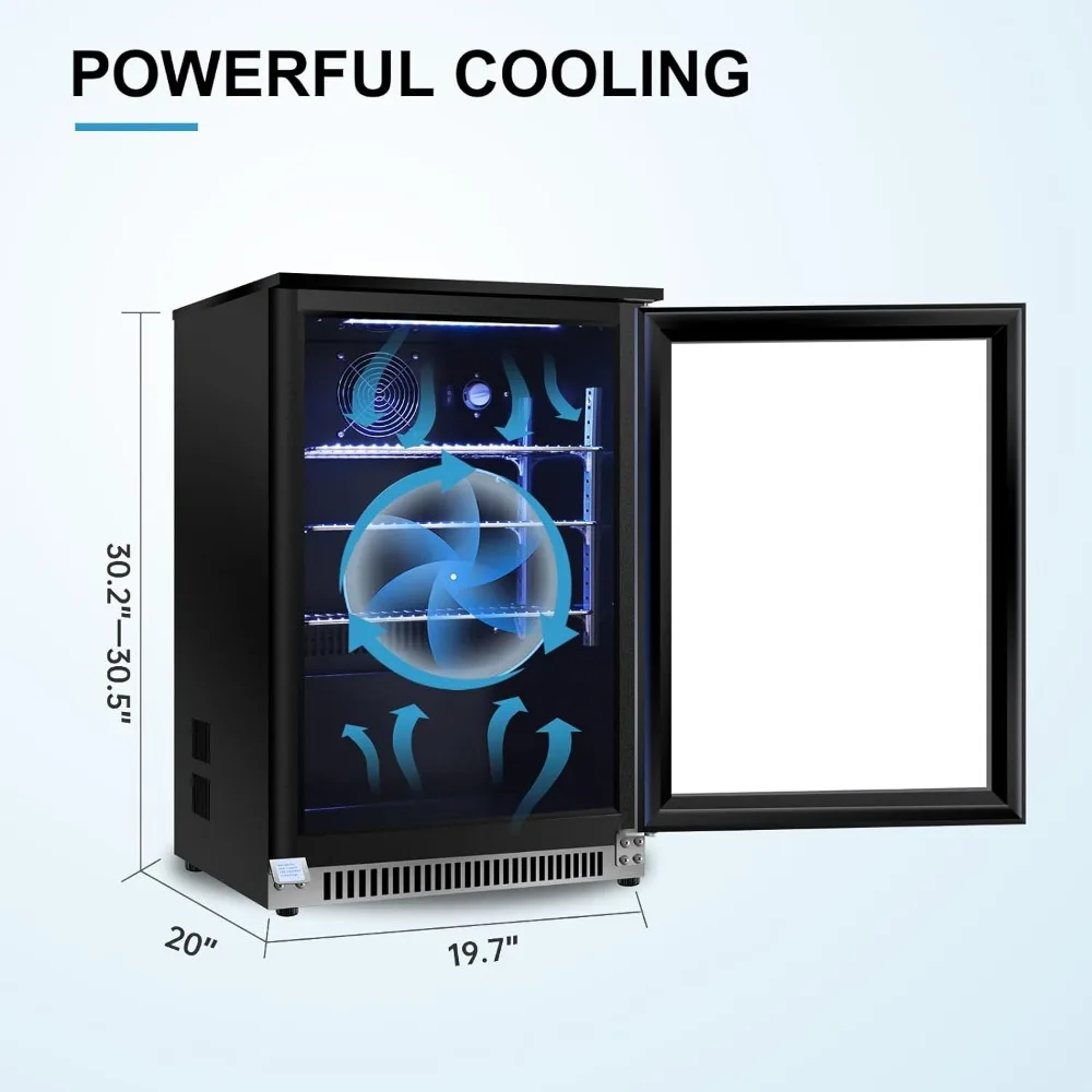 20 Inch Wide Built in Beverage Refrigerator with Clear Glass Front Door, 120 Can Under Counter Cabinet Soda Beer Drink Cooler