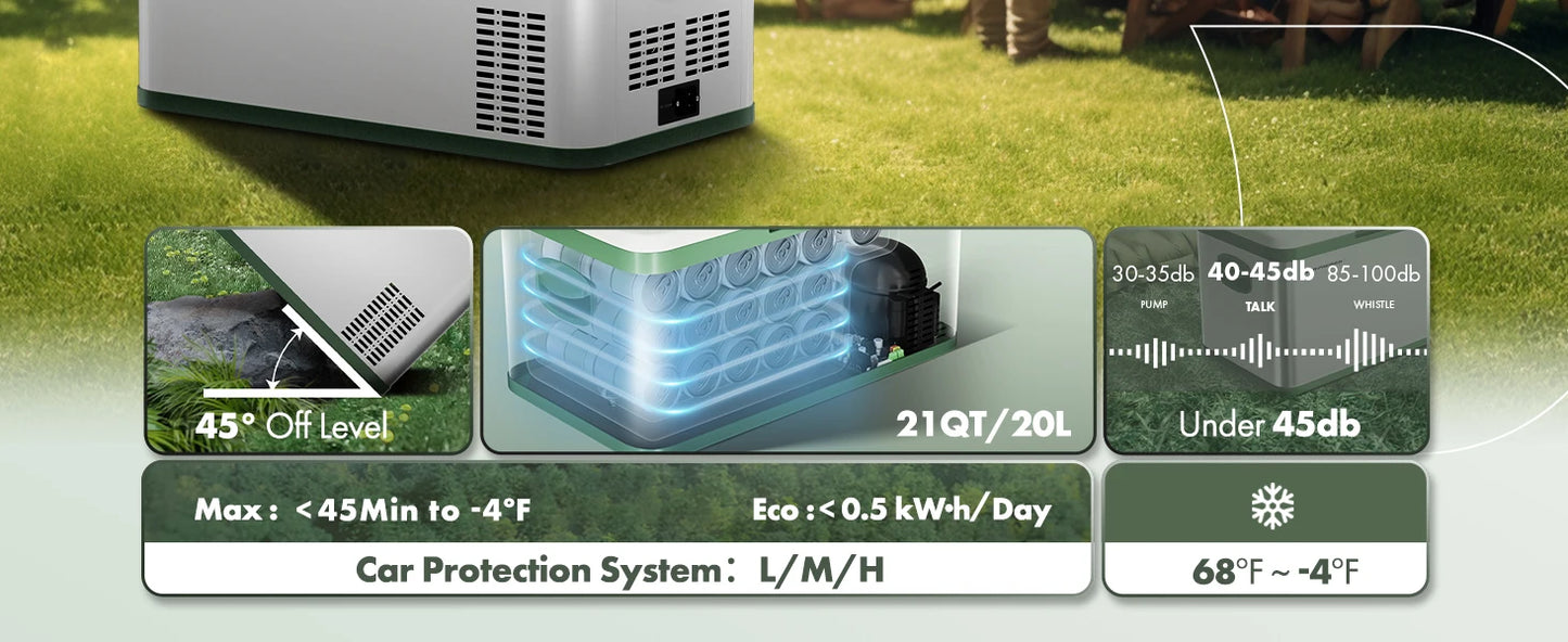 21QT/20.1L Portable Car Refrigerator Cooler, -4°F~68°F Portable Freezer Fast Cooling for Home Party Camping RV Roadtrips Truck