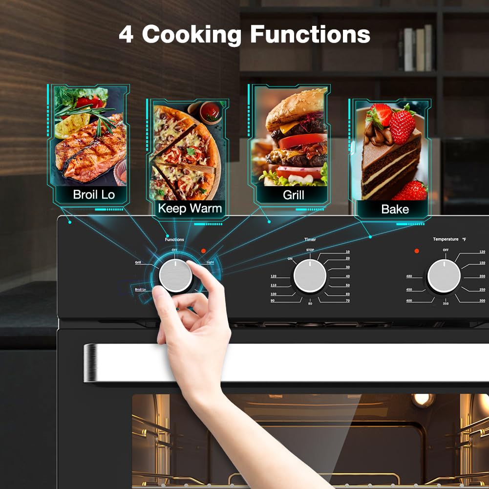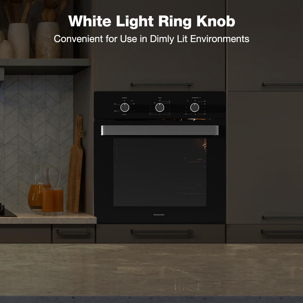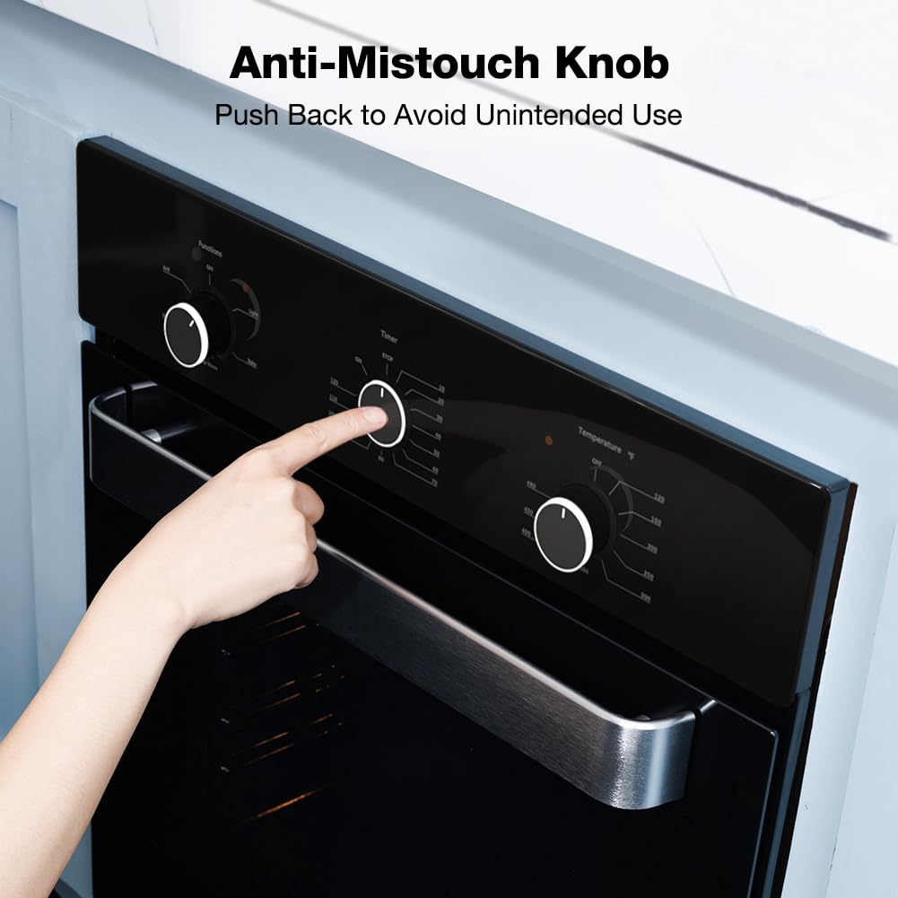 - Anti-Mistouch Knob with Light Ring-The control knob can be pushed back into the oven after the operation, which can prevent accidental activation of the oven or unintentional changes to the setting. Additionally, there is a white light ring around the knob that is easy to operate at night.