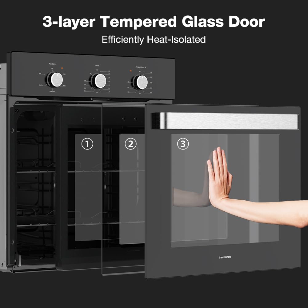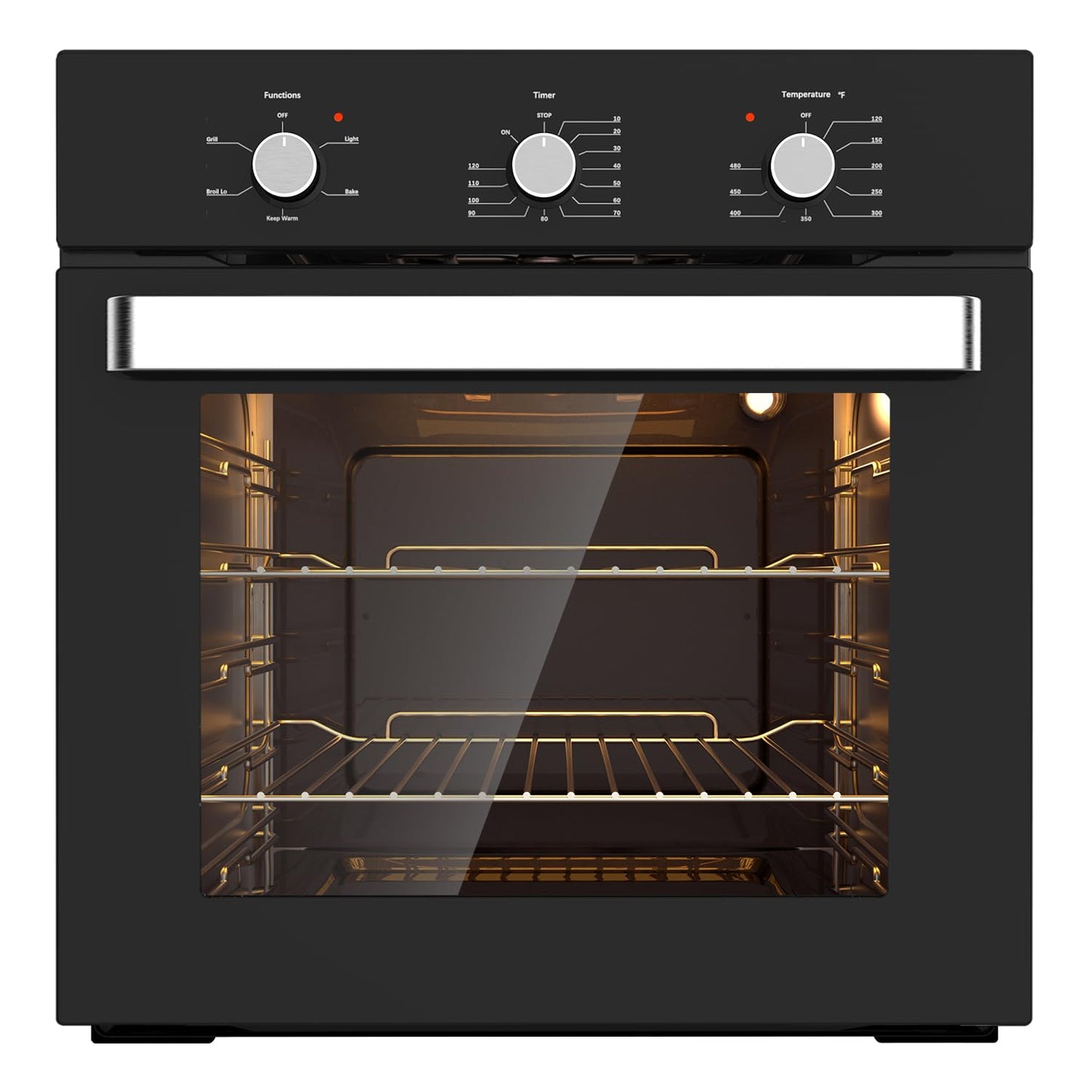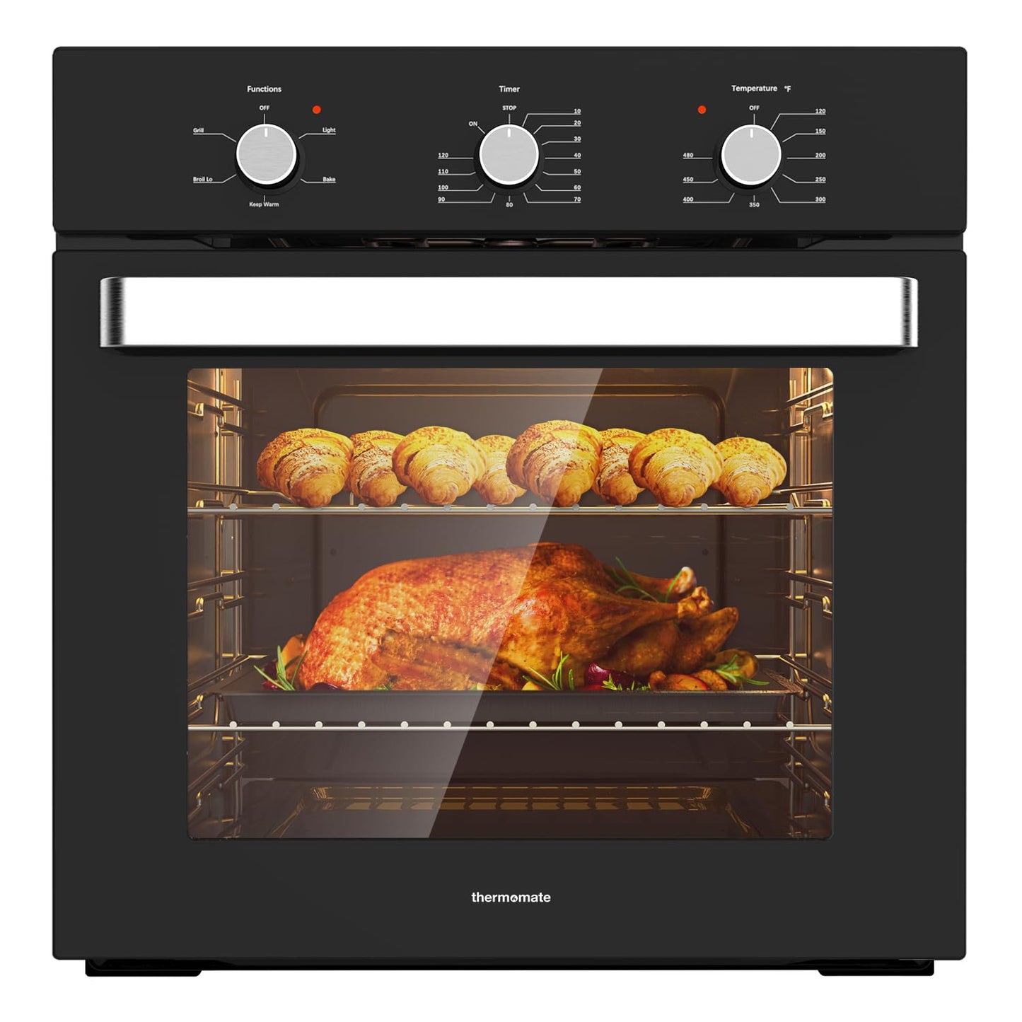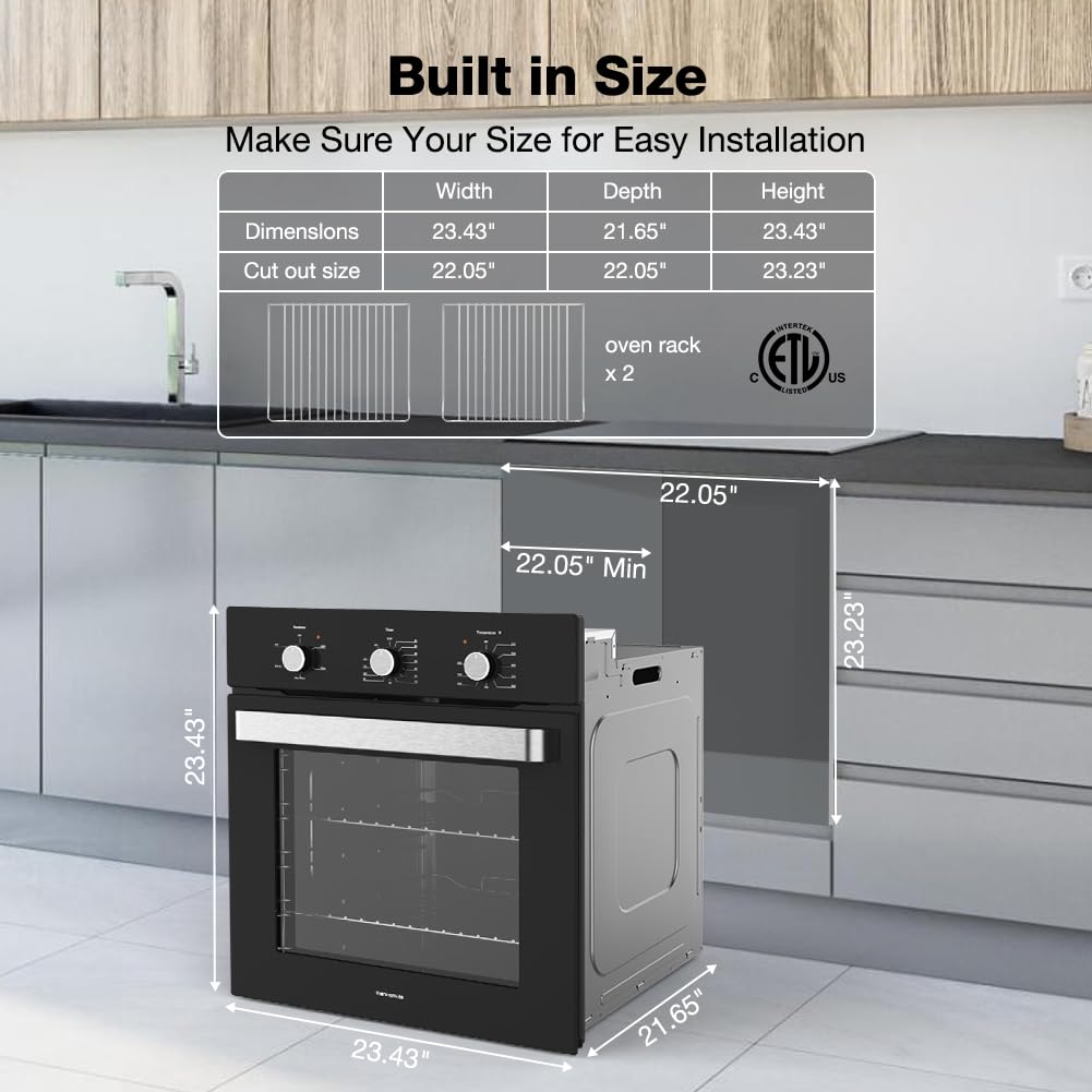 24 Inch Single Wall Oven, ETL Certified, thermomate 2.79 Cu. Ft. Built-in Electric Wall Oven with 5 Cooking Functions, Built-in Ovens with Mechanical Knobs Control, Black Tempered Glass Finish
