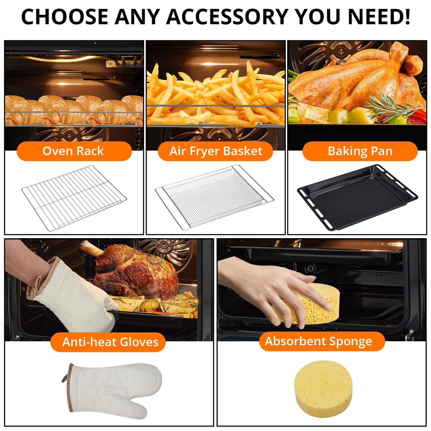- Enhanced 3D Surround Heating: With 3000W power, this in-wall oven uses 3D surround heating technology for even and efficient cooking. Perfect for achieving consistent results, whether you're baking, roasting, or air frying